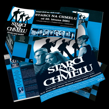 Divadelní podoba “Starců na chmelu” vznikla na základě kultovního filmu z šedesátých let, který podle scénáře Vratislava Blažka natočil režisér Ladislav Rychman. Projekt uvedla společnost F.A.C.T. 20. 4. 2001 v divadle Milénium v Holešovické tržnici v Praze. Za rok bylo odehráno více jak 100 repríz. Bohužel celý projekt ukončily záplavy v létě 2002, které Holešovické divadlo zasáhly